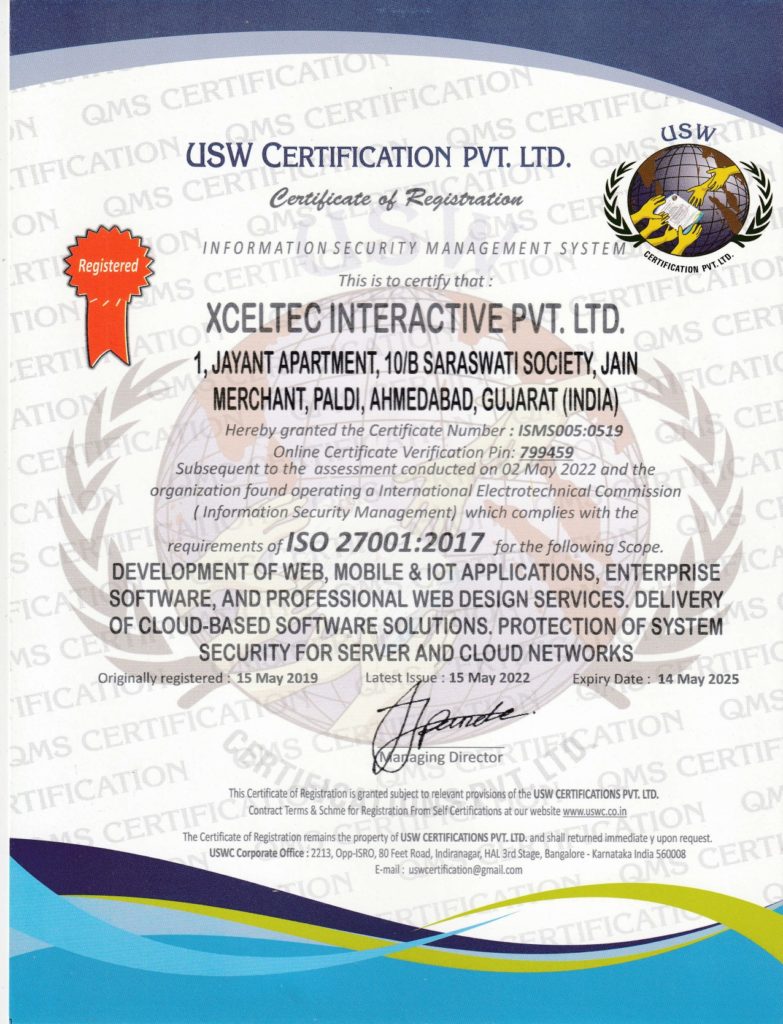 XcelTec has renewed and upgraded with ISO 27001:2017 on 15th May 2022 signifying that our services meet the best standard for an information security management system.