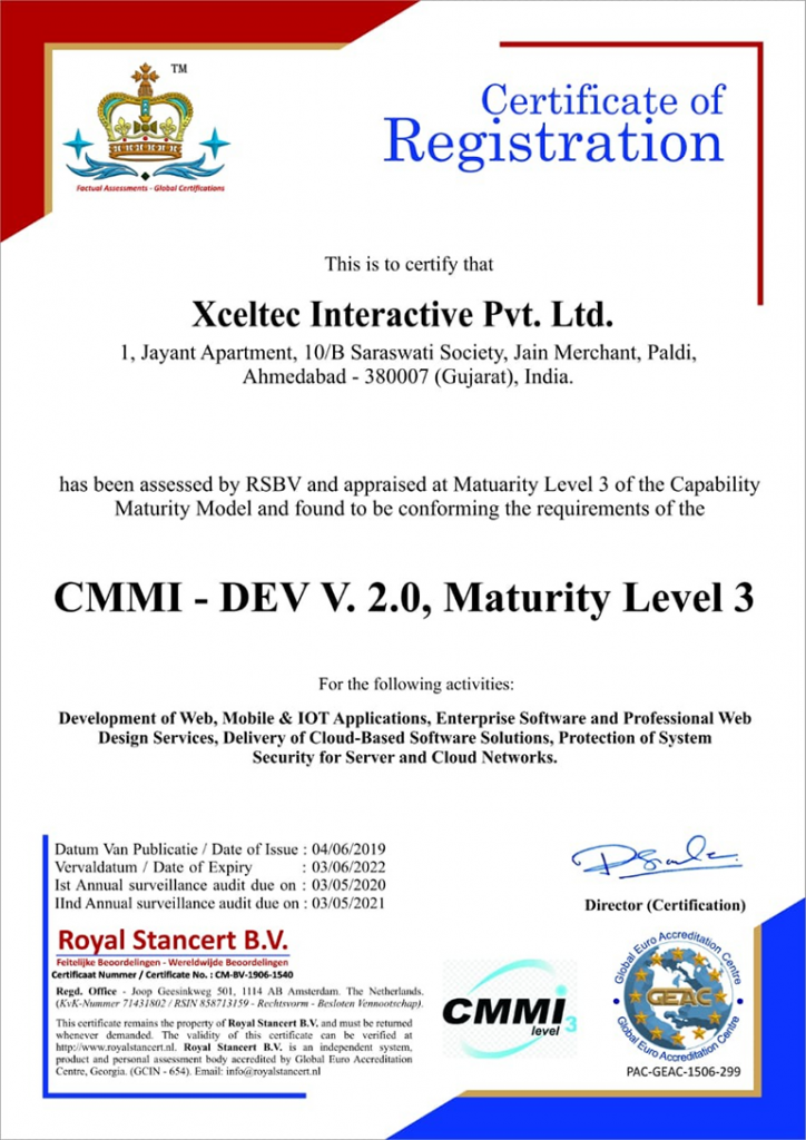 This achievement of certification is not only for our clients but also for our own growth and development. CMMI appraisal is not strictly customer centric initiation. It’s a more process-centric approach where our people can better their processes and get more quantitatively important. XcelTec borrows a cycle of self-improvement relentlessly and that’s our crowning goal. Through our continuous endeavor for quality, we believe we can win a higher level of maturity in our CMMI journey.