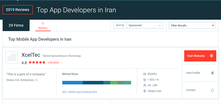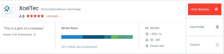 We are honored to receive this recognition. Just recently XcelTec is also listed on the first rank in App Developers in Iran directory on the clutch. We are devoted to our clients, and we can’t wait to continue providing our clients with the highest quality service possible.